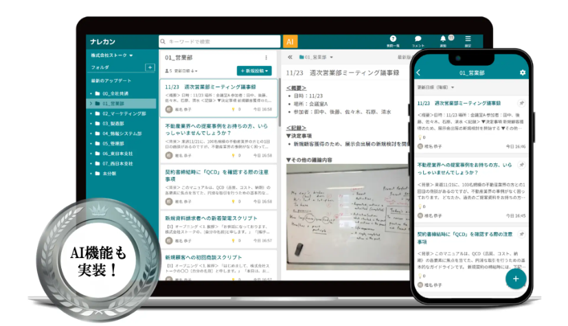 これらの特徴により、『ナレカン』は、ナレッジが“蓄積されるだけでなく活用される環境”を実現し、非IT企業をはじめとする多くの企業の情報共有の課題を根本から解決いたします。