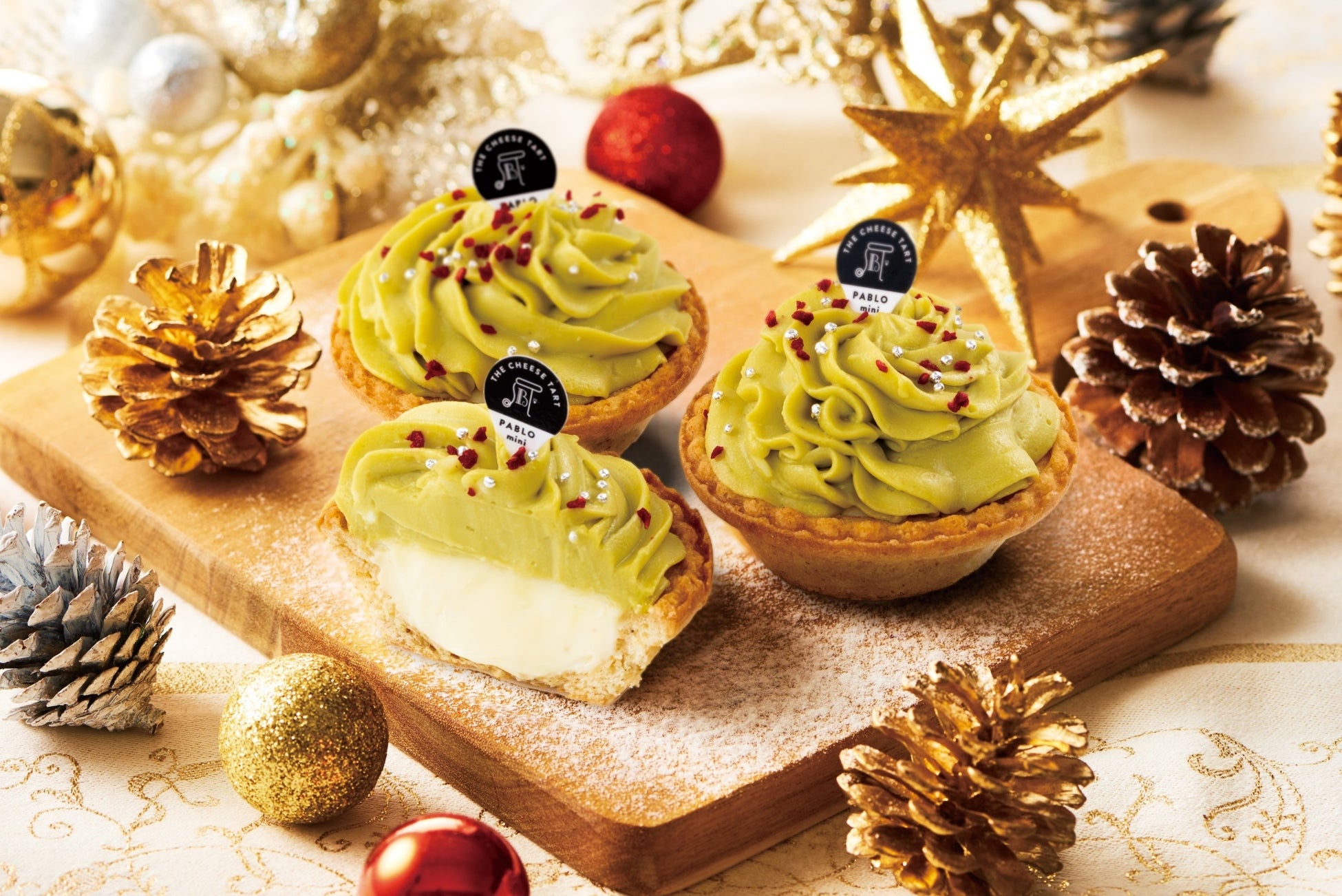 見た目も華やかでクリスマスパーティーにもおすすめ!上質なイタリア産ピスタチオとチーズタルトのハーモニーをお楽しみください。