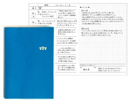・個人・チームの目標に向けた課題を「仮説」としてたて、それを練習で「実行」し、結果を「検証」する活動を日々行います。・ ①で把握した能力を意識しながら、仮説や検証結果を毎回手帳に記載し、自身の進捗を振り返ります。