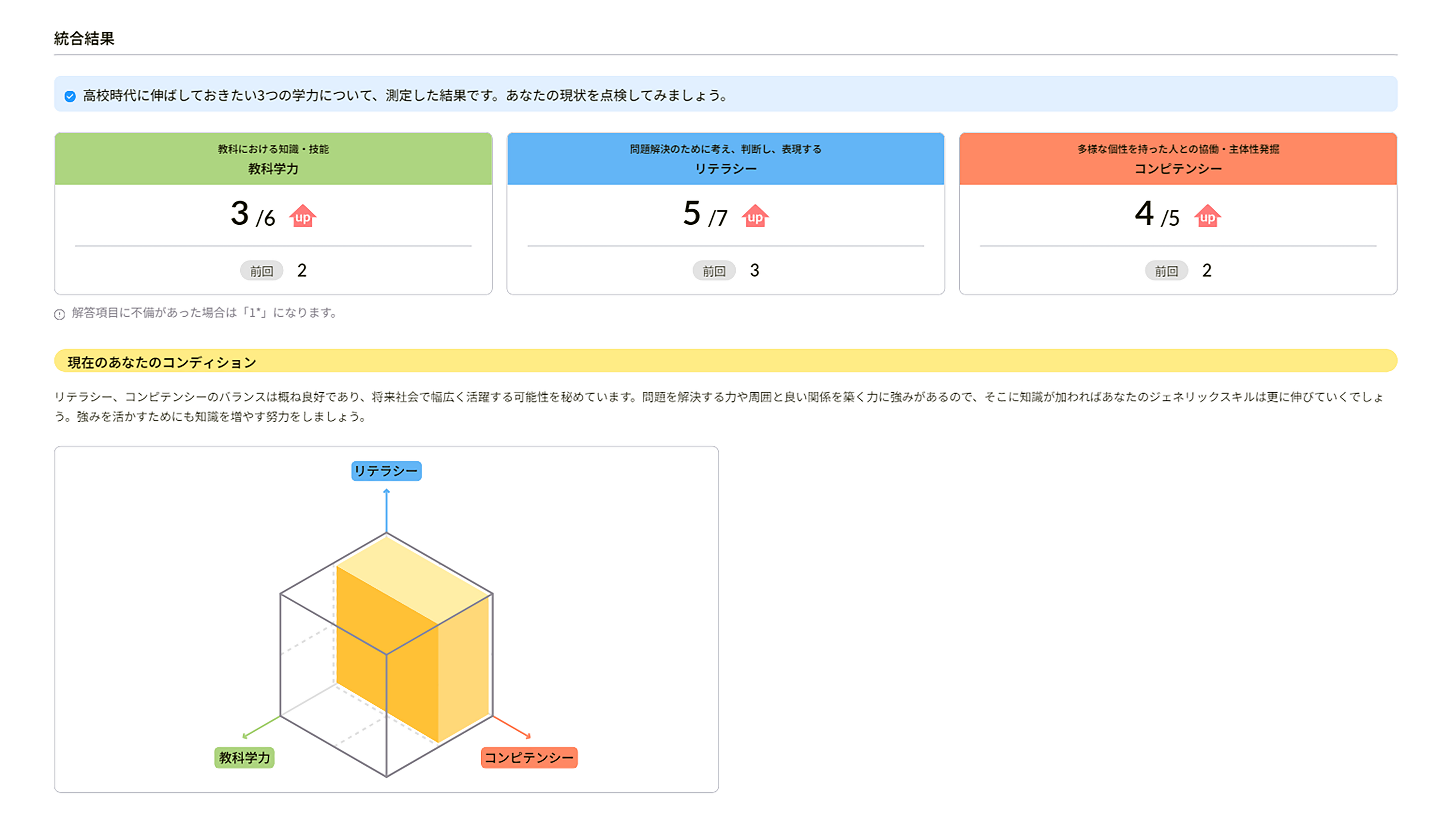 1年間のプログラム実施後に、再びアセスメントテストを実施し、自分の能力がどれくらい伸びているかを確認します。