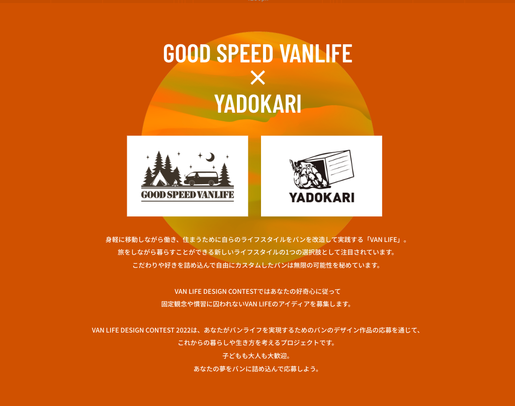 【グッドスピード × YADOKARI】バンライフをより多くの人に届け、可能性を広げる「VAN LIFE DESIGN CONTEST 2022(バンライフデザインコンテスト2022)」開催!