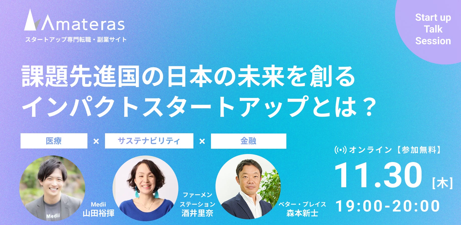 11/30(木)課題先進国の日本の未来を創るインパクトスタートアップ3社によるオンラインセッション開催
