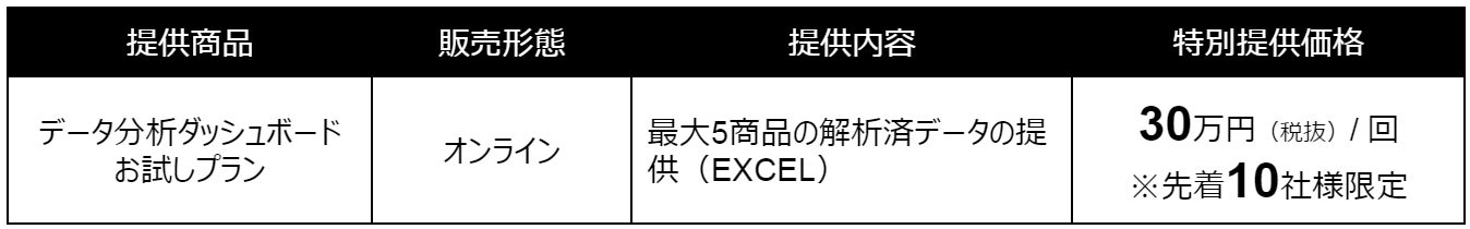 また今回、リリース特別企画として先着10社限定でお試しプランを1回30万円(税抜)で提供します。