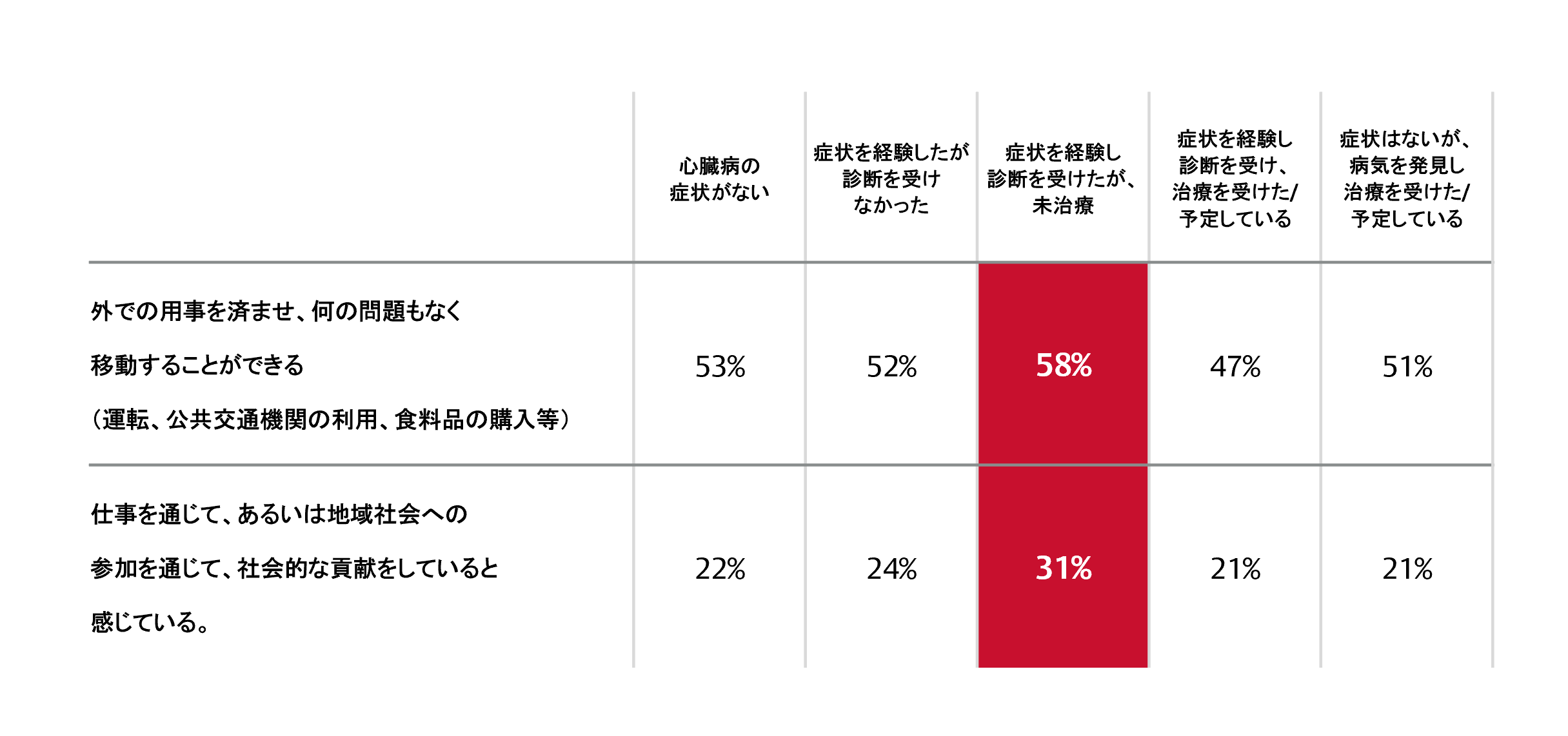 心臓病は気づかない間に進行してしまう可能性があるにも関わらず、このグループは、日常の用事や仕事を行うことができるため、まだ治療を始める必要がないと安心していると推測されます。