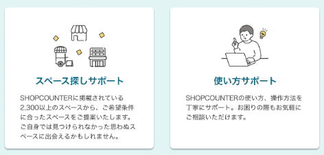 - SHOPCOUNTERスタッフがスペース探しを無料でサポート