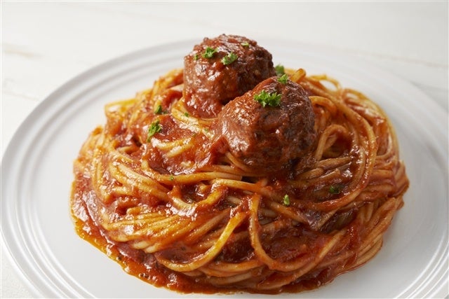 ボロネーゼの肉らしい風味を実現するために、野菜を炒めた甘味、旨味でベースをつくり、ごぼうと赤ワインの風味で肉を煮込んだような味を表現。さらに、香辛料の配合であいびき肉のような味を再現。