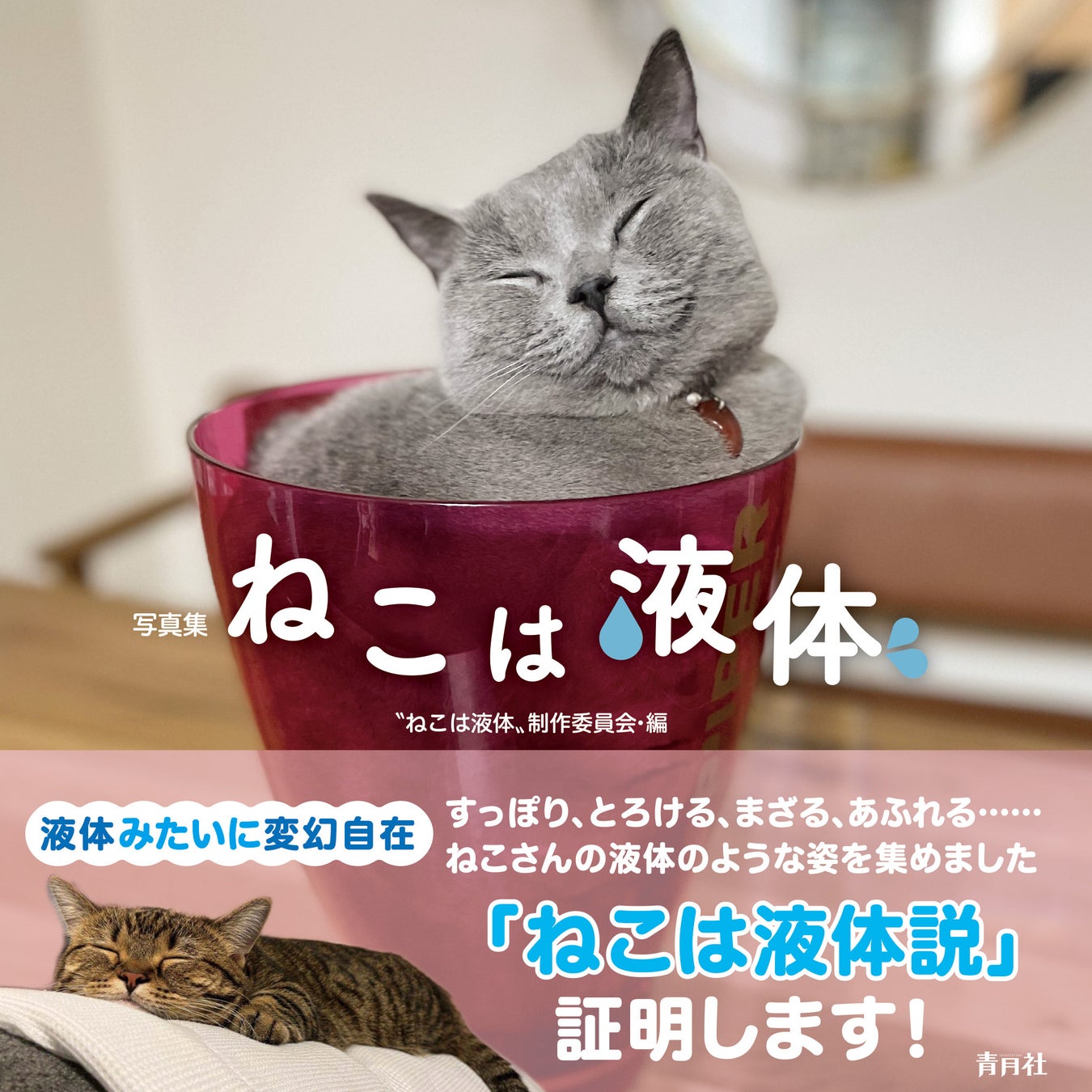 株式会社 青月社(本社:東京都千代田区、代表:望月勝)は、2022年12月20日(火)に写真集『ねこは液体』を刊行いたします。変幻自在に姿を変えるねこさんたちを堪能できる写真集です。