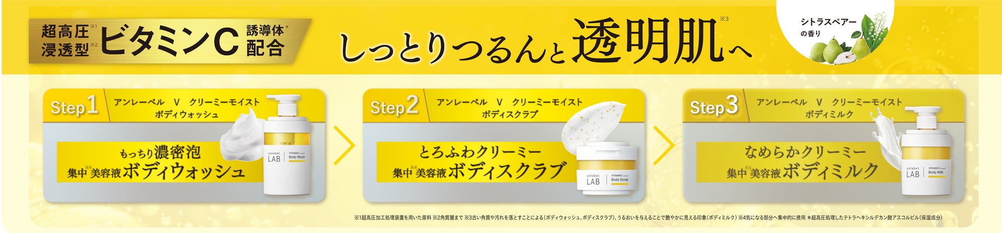 「アンレーベル ラボ」のスキンケアテクノロジーをボディケアに応用した、超高圧*¹浸透型*²ビタミンC誘導体*³の美容液ボディケアシリーズが3月より待望の全国発売!