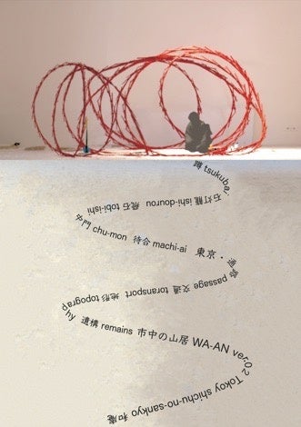 立ち上がる。茶室は、空間的移行としての「露地」と、精神的転換としての「山居」の二つの次元によって成り立ち、「市中の山居」は、日常「市中」から茶の湯の清浄な世界へと段階的なアプローチを持つ。「アースダイバー」*的リサーチにより、この場所周辺の建築・通路・交通・地形・遺構を、茶の「露地空間」や「市中の山居」として「見立て」、人は時空を超えて、橋上の「和WA」の庵へと至る。散会後、橋を渡り古層の庭も散策する。物質を伴うインスタレーションは保管、廃棄の問題もある。「南京玉すだれ」の構造システムと竹の菜箸を利用したトランク1つで旅する「WA-AN和庵」(磯崎新レガシー/テヘラン「間」展出品)のバージョン2.0は、東洋竹工の加工・漆塗装技術とのコラボにより総朱漆塗りとなり、「市中の山居」として各地で出現と消失を繰り返す。(WAは平和/和する/和む/の意)(*中沢新一著作名)