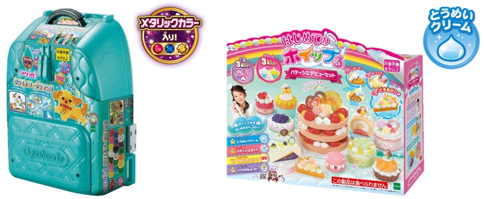 エポック社の大人気メイキングトイ「アクアビーズ」と「ホイップる」から新商品登場!「アクアビーズ クリエイターズリュック」「はじめてのホイップる パティシエデビューセット」