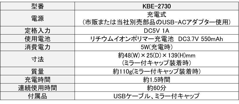 ・USB充電式で、隅々までチェックできる便利なミラー付キャップを付属。