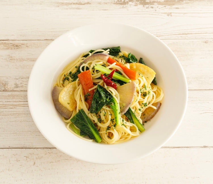 季節野菜のペペロンチーノはヴィーガン対応となります。