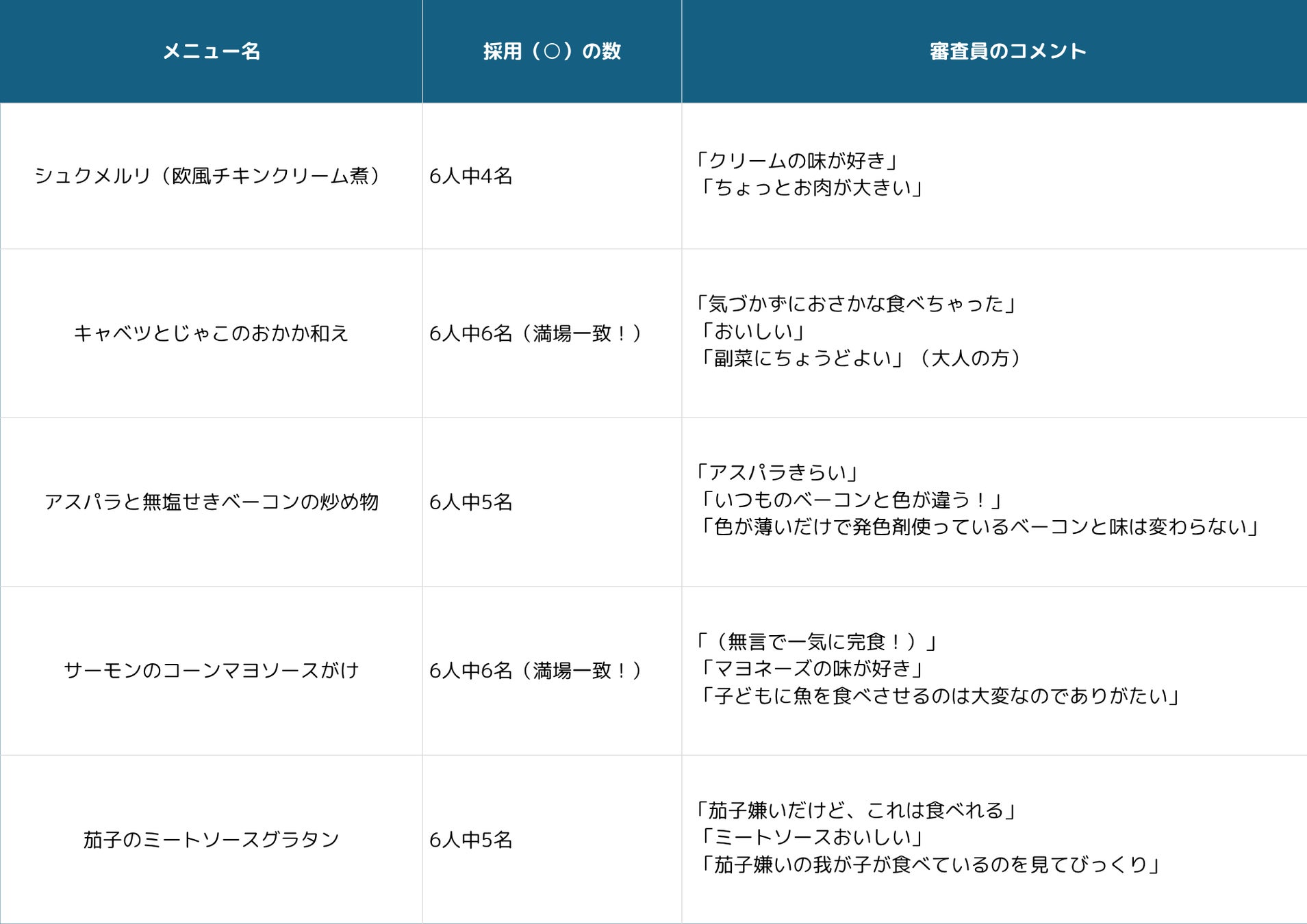 ■ 子どもたちが“味”を決める!試食メニューの審査結果