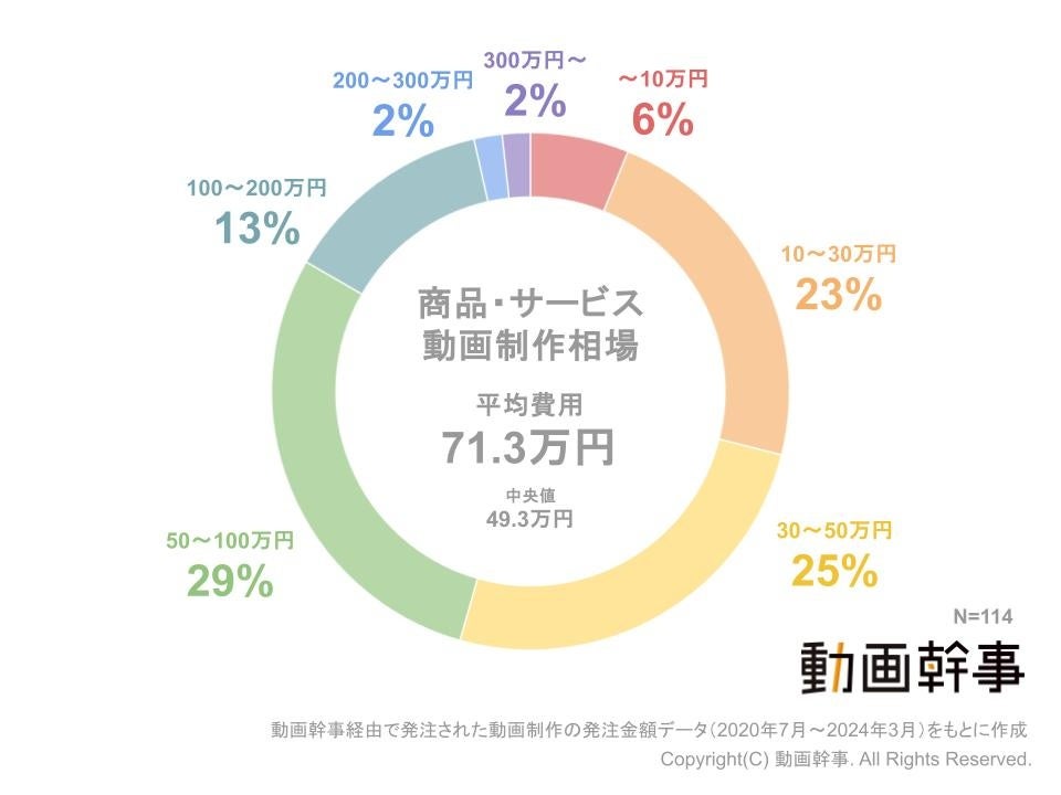 ・商品・サービス紹介動画制作の平均相場は71.3万円。中央値は49.3万円