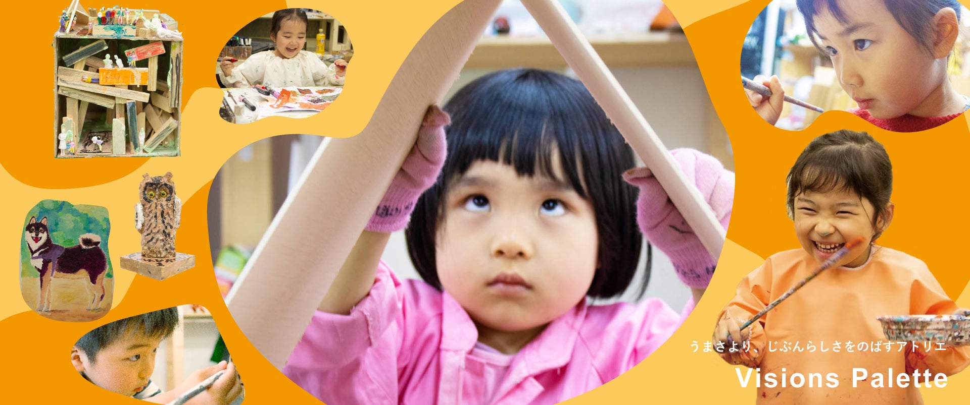 Visions Palette “ビジョンズパレット”は、決められたカリキュラムがなく、「何をつくるか」とテーマから考える、準個別指導のアトリエ教室。うまさより、じぶんらしさをのばすことを大切にした、 “じぶんに出会えるアトリエ教室” というコンセプトで運営しています。オープンから9年目を迎える学芸大学アトリエと、2020年10月にオープンした三軒茶屋アトリエ、2022年6月にオープンした自由が丘アトリエ、2023年10月にオープンした駒沢大学アトリエの4教室で、現在1000名以上の生徒さんが在籍しています。