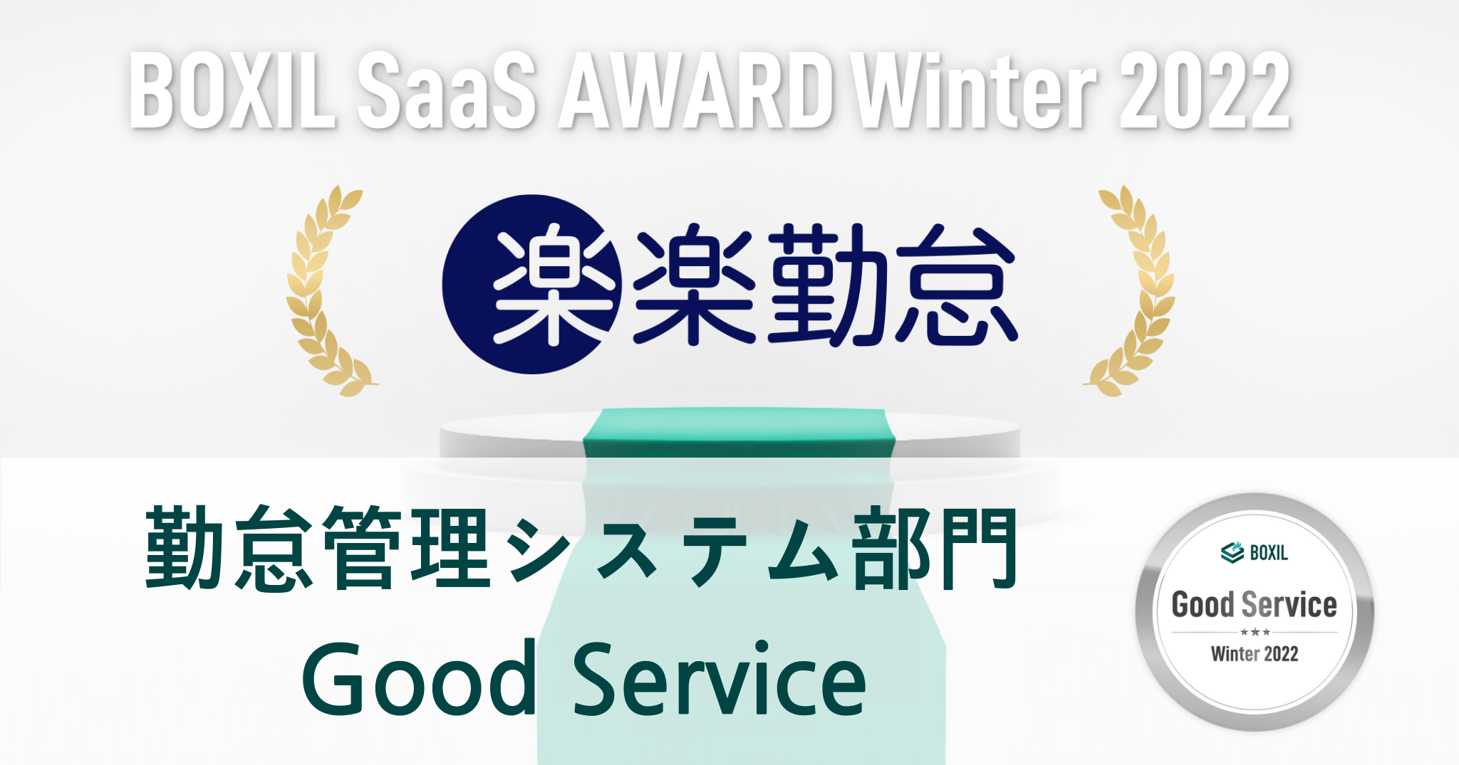 株式会社ラクス(本社:東京都渋谷区、代表取締役:中村崇則、以下ラクス)が開発・提供するクラウド型勤怠管理システム「楽楽勤怠」は、スマートキャンプ株式会社(以下スマートキャンプ)が今最も評価されているSaaS(※)を表彰する「BOXIL SaaS AWARD Winter 2022」で勤怠管理システム部門 Good Service に選出されました。