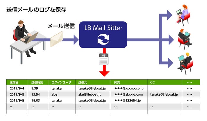 メールをいつ、だれに送付したのか、送信ログを保存することができます。