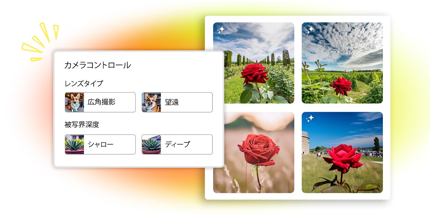 ● 高度なカメラコントロール:ショットタイプや被写界深度を使用し、出力をより厳密にコントロール。