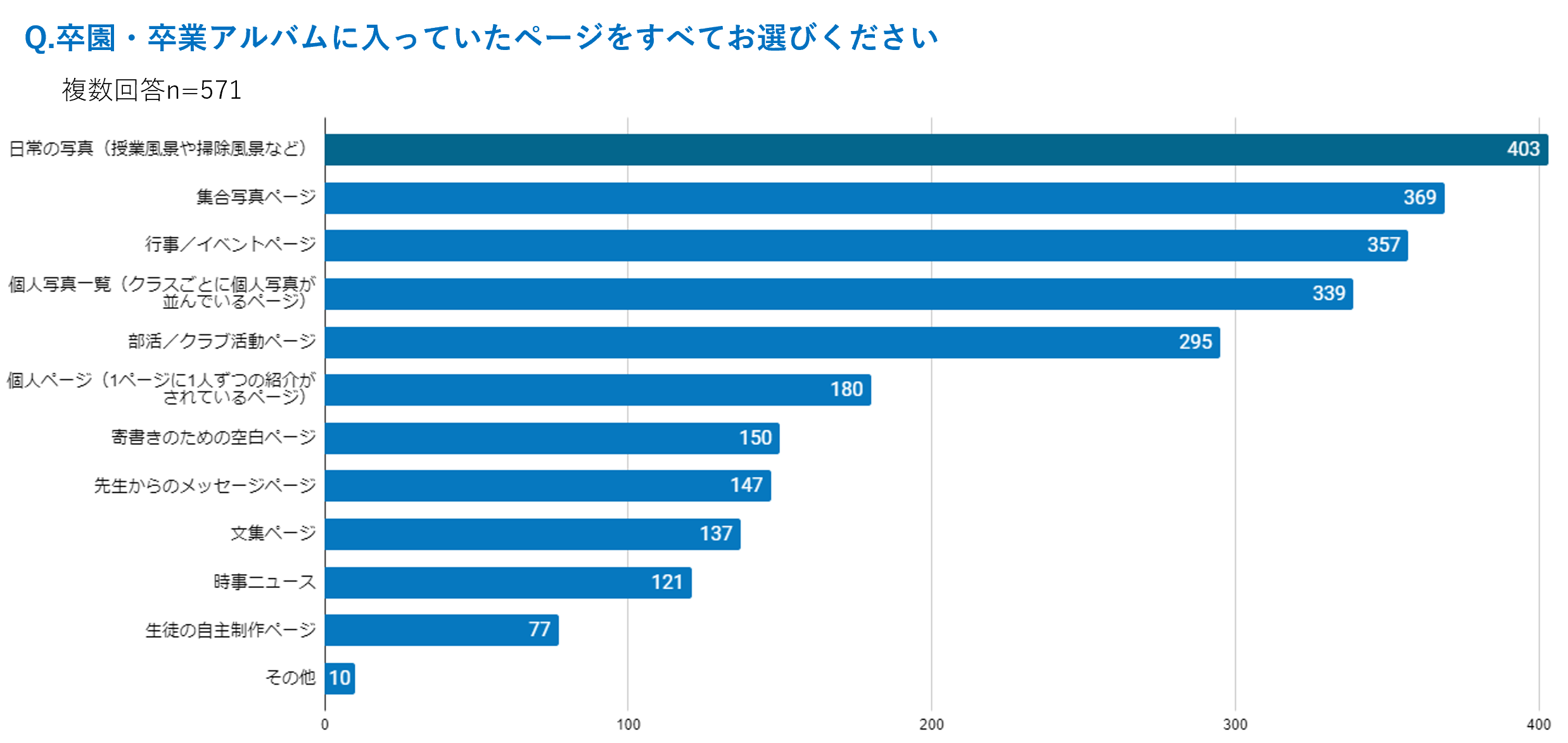 - 卒園・卒業アルバムで1番多かった写真は「日常の写真(授業風景や掃除風景など)」