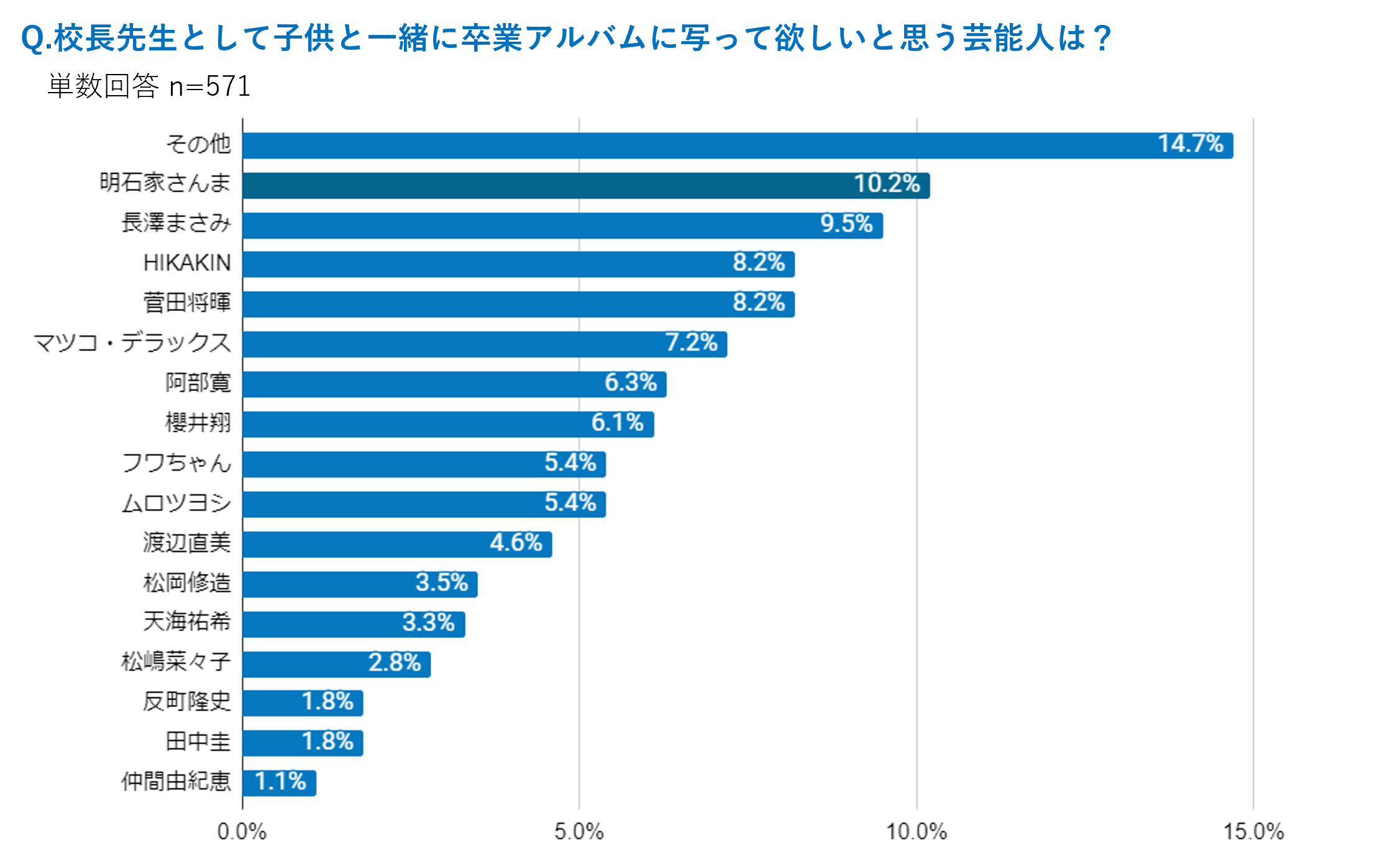 ■校長先生として子供と一緒に写って欲しいと思う芸能人1位は「明石家さんま」