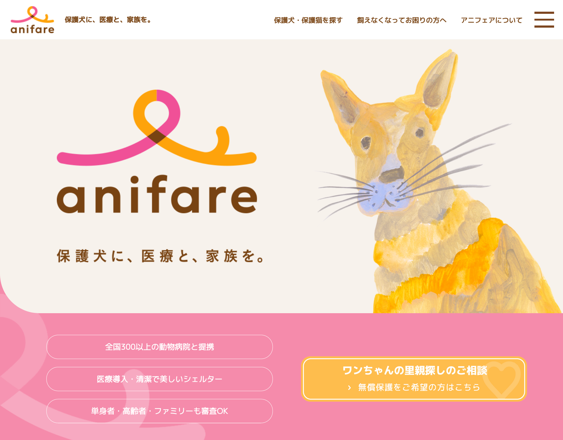 株式会社フューチャースピリッツ(本社:京都府京都市下京区、代表取締役 谷孝 大、以下「フューチャースピリッツ」)は、一般社団法人アニマルウェルフェア東京(東京都八王子市、代表理事 原田康隆)が運営する、保護犬・保護猫の里親募集サイト「anifare(アニフェア)」の活動に協賛、Webサイトの安定運用をインターネットインフラ面から支援します。