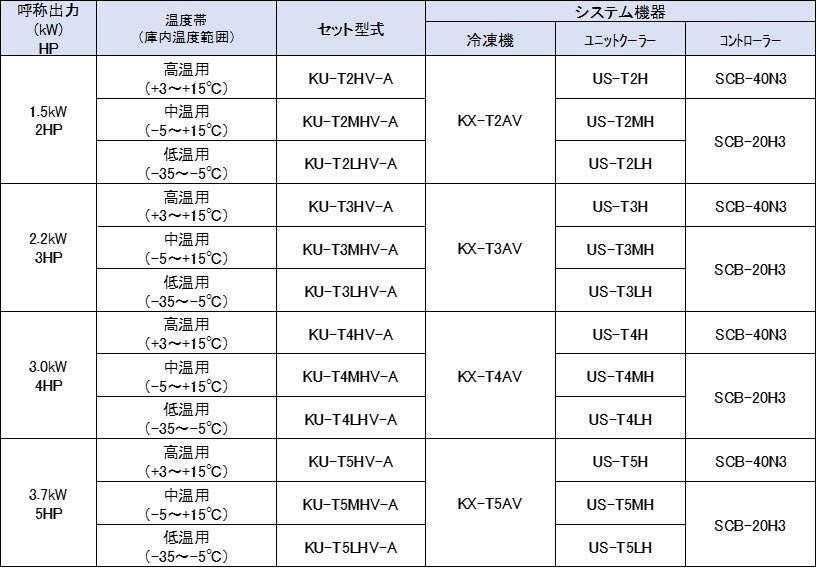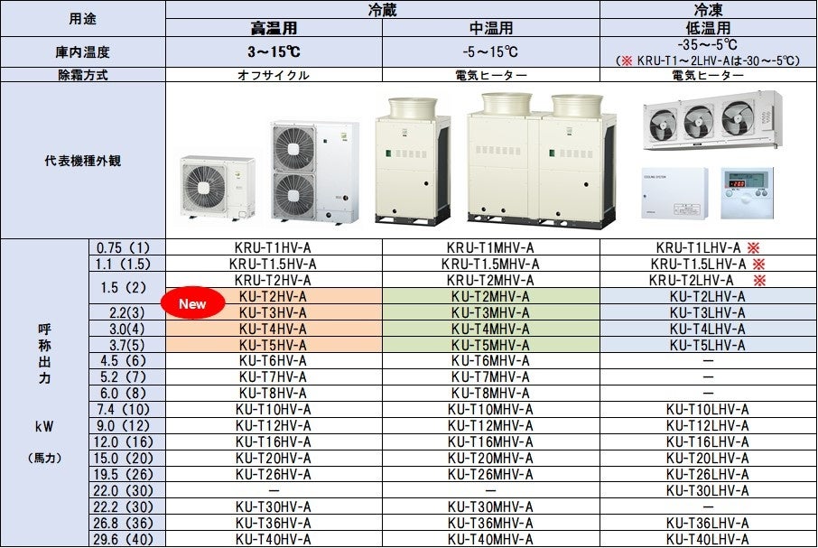 不燃性冷媒R448Aを採用 インバータークーリングシステム(高温・中温・低温用/2~5馬力、計12セット)9月より受注開始