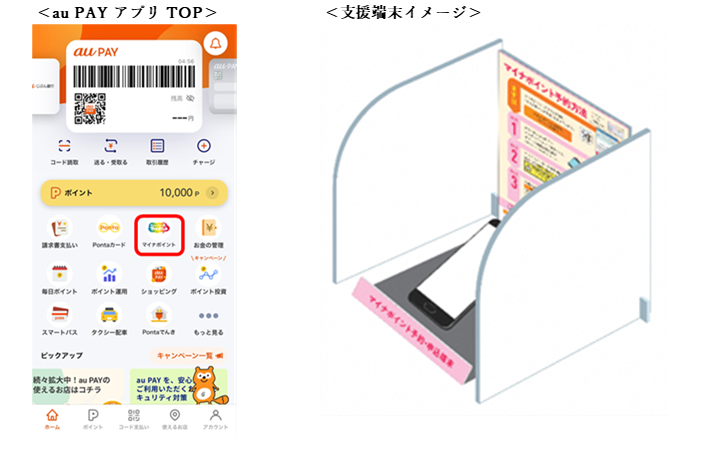 また、マイナポイント手続きスポットとなっている全国のau Style・auショップでは、設定手続き支援端末(注2)を利用しお客さまの手続きの一部をサポートします。