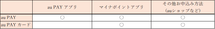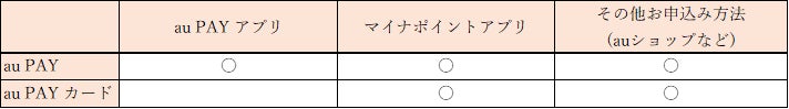 | 付与時期 | 【au PAY】 ・マイナポイントアプリからお申し込みの場合:申込翌日から即日付与 ・au PAY アプリからお申し込みの場合:申込当日から即日付与 (システムの都合上、お申し込み・チャージのタイミングにより、付与日が翌日となる場合があります。) 【au PAY カード】 ・前月16日から当月15日までの対象決済に対して、翌月初旬頃に付与 |