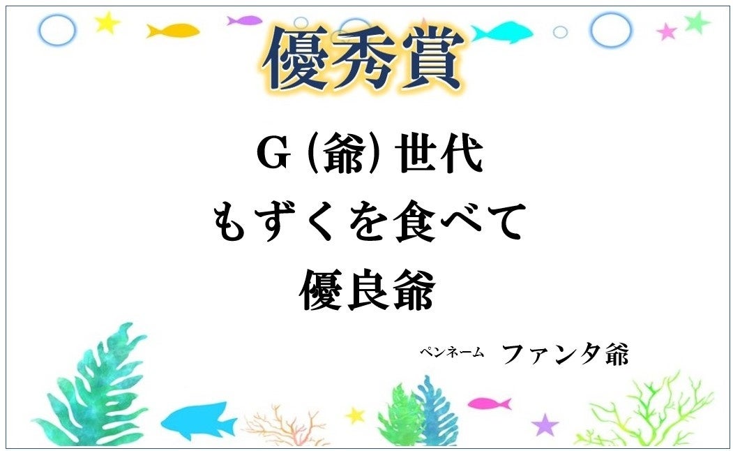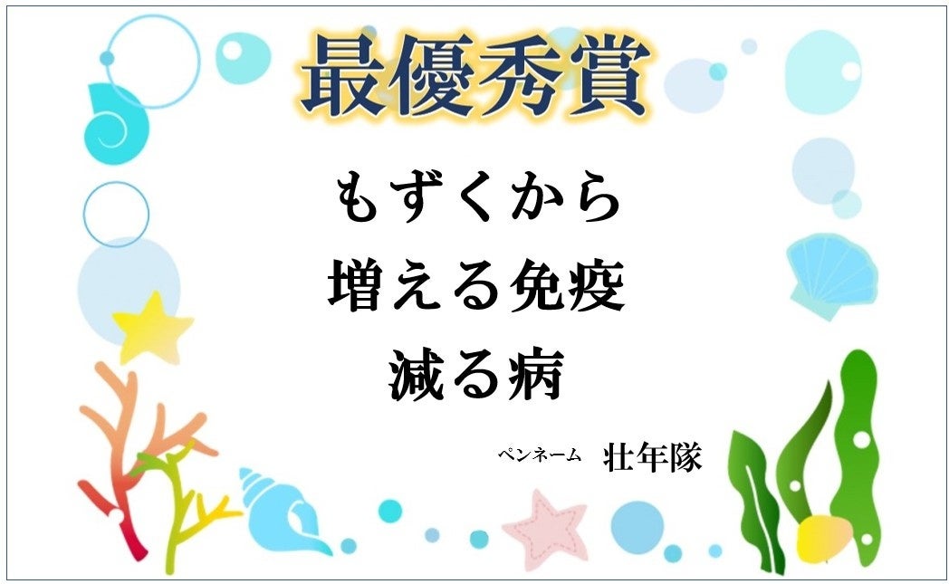 もずくを食べ続けることで、年をとっても健康の貯えが自らの支えになるということが表現されており、最優秀賞にふさわしい素晴らしい句です。