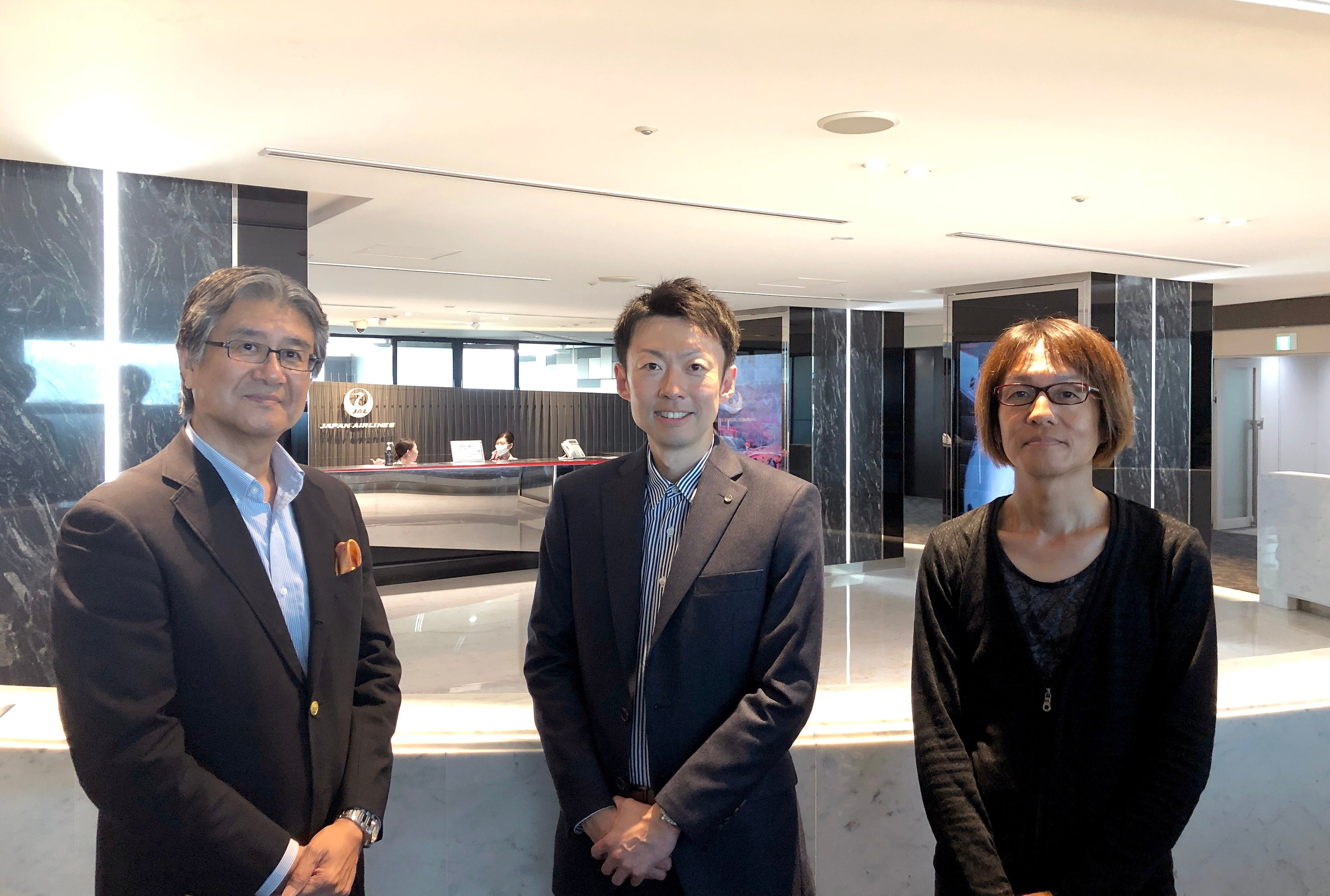 ▲左から石井 龍夫、小西 孝典氏(日本航空株式会社)、山名 敏雄氏(日本航空株式会社)