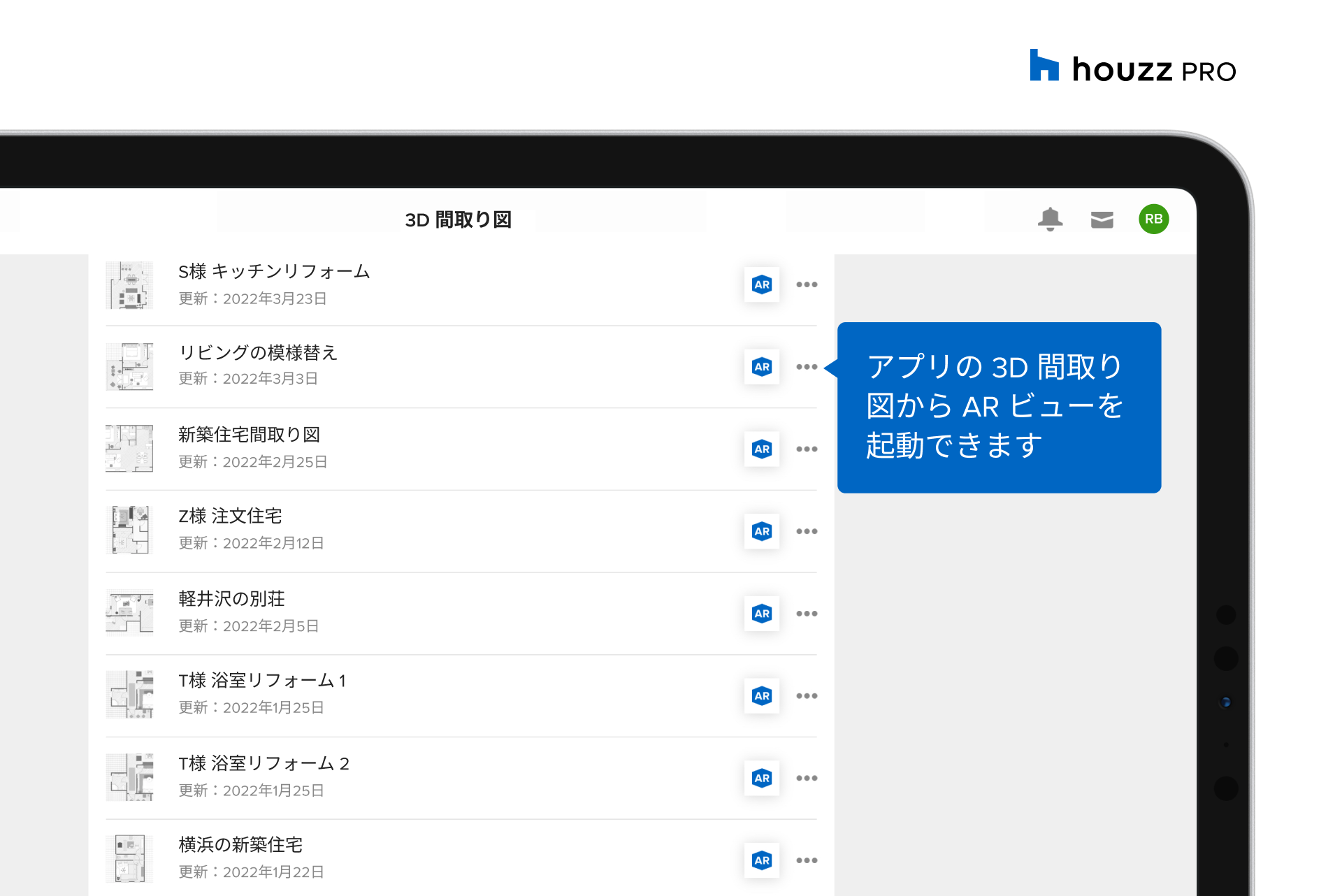 【Houzz の共同創業者兼社長 アロン・コーエンのコメント】「Houzz では、家づくりや設計・デザインをより効率的、かつ、より楽しくするための技術開発に注力しています。視覚的なツールを使うと、専門家は案件のイメージを顧客に分かりやすく伝えることができます。この度、私たちは、真の AR 体験を可能にしました。ぜひ専門家の皆様には、この機能を使って図面のプランをリフォーム前の空間上に再現し、お客様に完成後の姿を体験してもらい、理想の家づくりに役立てていただければと思います。」