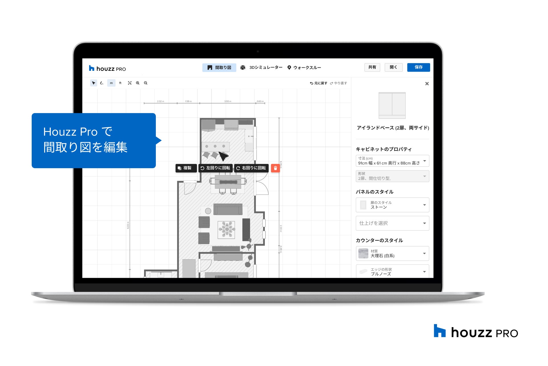 3Dフロアプランナー機能は全ての Houzz Pro プランでご利用いただけます。Houzz Pro は、専門家が効率的で収益性の高い事業を運営し、新規顧客を獲得することを容易にし、卓越した顧客体験を提供することができます。Houzz Pro は、北米、ヨーロッパ、アジア、オーストラリアの10か国以上でご利用いただけます。お申し込みいただくプランは予算やチーム編成に合わせてお選びいただくことができ、それぞれにウェブサイト作成サービス、見込み案件管理ツール(CRM)、事業管理ツールなどが含まれます。https://www.houzz.jp/proで無料の Houzz Pro アカウントを作成し、3Dフロアプランナーをお試しください。
