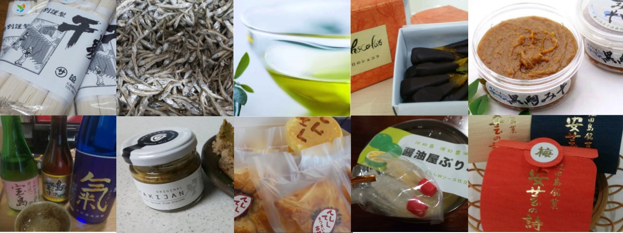 ・離島ならではの風土を活かした手延べうどん、海産物、日本酒など