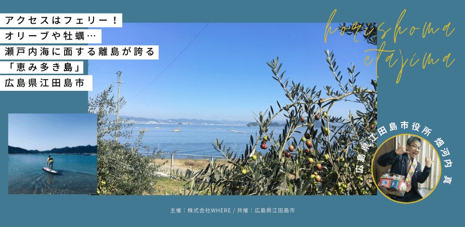 広島市からフェリーで30分、広島空港から車で1.5時間の瀬戸内海のまち。自然環境を活かした産業が盛んで牡蠣の生産量が日本2位、オリーブ生産も積極的に展開し世界的なコンテストで総合2位を受賞。マリンスポーツ観光等で年間52万人訪れる。