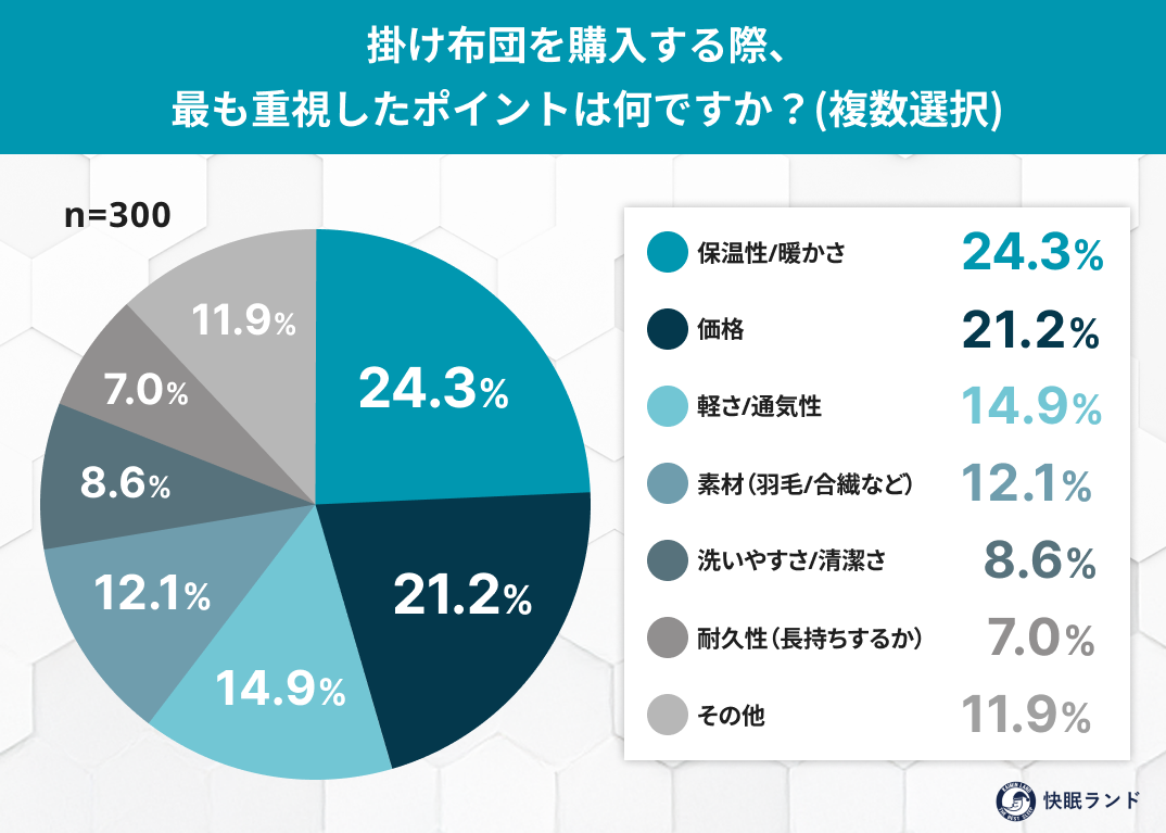 Q4. 掛け布団を購入する際、最も重視したポイントは何ですか?