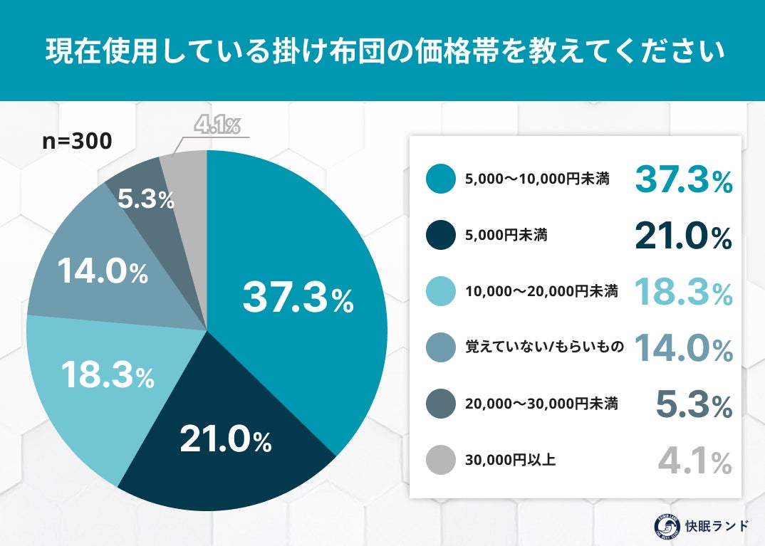 掛け布団の価格帯は「5,000〜10,000円未満」が最多(37.3%)