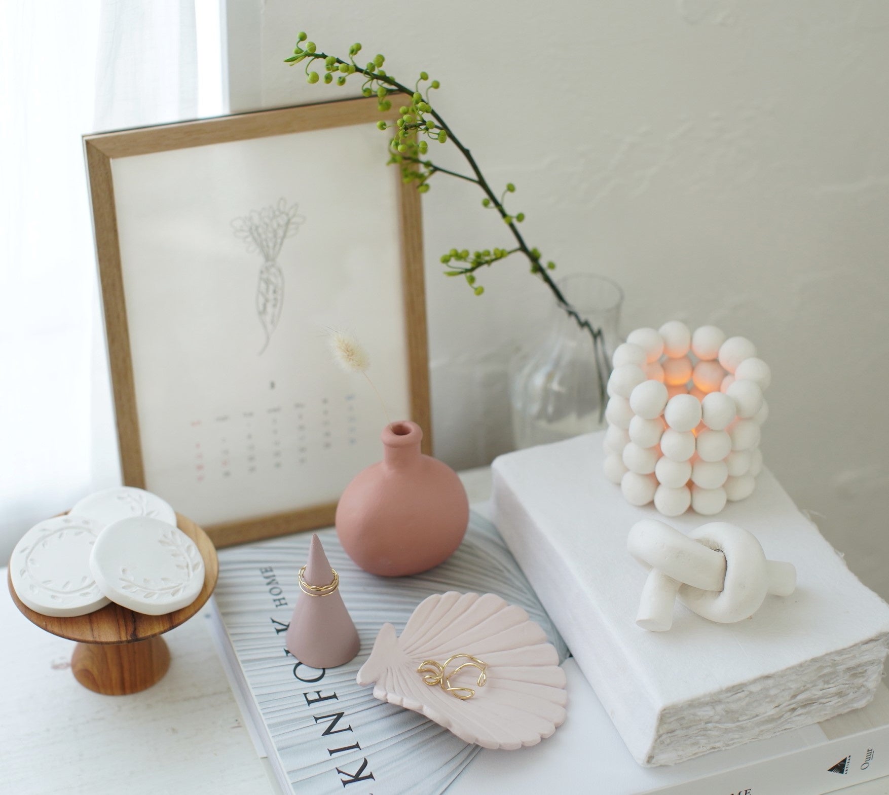 空間をおしゃれに演出するアイテムは、ひとつずつ丁寧に集めたいもの。Craftie Homeが3月にお届けするのは、そんなおしゃれアイテムが手作りできちゃうインテリアクレイのキットです。色も形も思いのまま、プチ陶芸気分でお気に入りを作ってお部屋に迎えましょう!