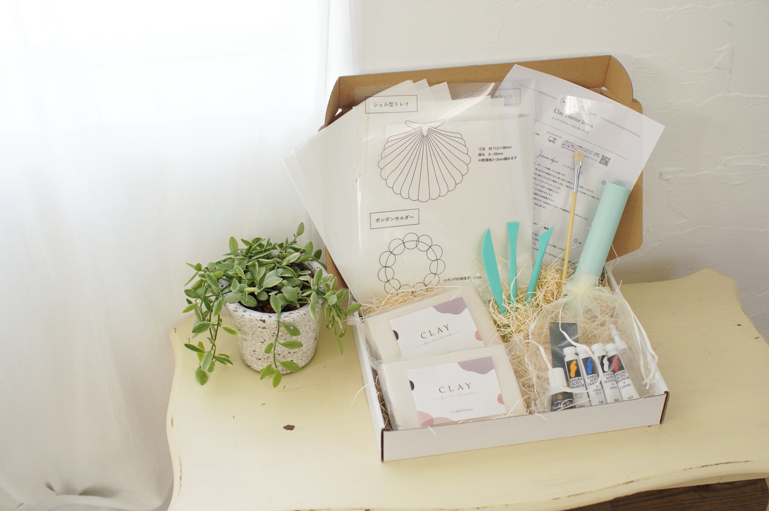 3月のCraftie Home Box(クラフティホームボックス)は、6種類のおうちアイテムが作れるインテリアクレイのキットです。クレイの楽しさは、なんといっても手ひとつでいろんなものを創造できるところ。プチ陶芸のようなクラフトの楽しさと、イメージを自由に表現できるアートの楽しさ。インテリアクレイは、そんな2つのワクワクを併せ持っているのです。