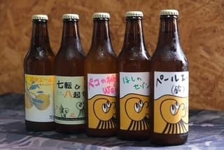 川口の端っこでHoshino Beerというクラフトビールを使っています。町工場を改装してできた小さなビール工場です。ご多幸のタコのマークをモチーフに様々な副原料を使用したビールを作っています。