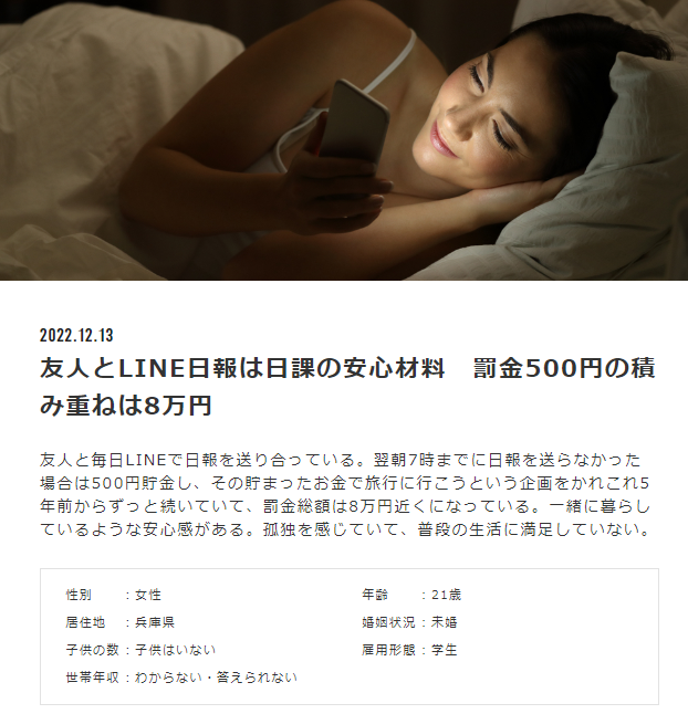 インサイトリサーチでアイデア開発を支援する株式会社デコム(所在地:東京都千代田区、代表取締役社長:大松孝弘)が提供中の『Trend banK』は膨大なn=1の消費者/生活者の定性情報が見られる専門メディアです。商品開発やプロモーションなどでアイデアや企画出しが必要な企業や担当者に向け、新規路線発見のヒントとなるn=1の事象を収集・提供しています。全コンテンツ合わせて10,000件を超える多彩な事象がアイデア・企画出しのヒントとして、また新領域や未来のオポチュニティの探索として活用できます。