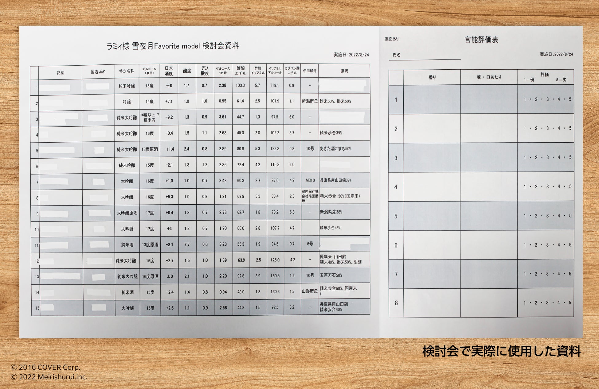 2022年8月に都内某所でテイスティング検討会を実施。