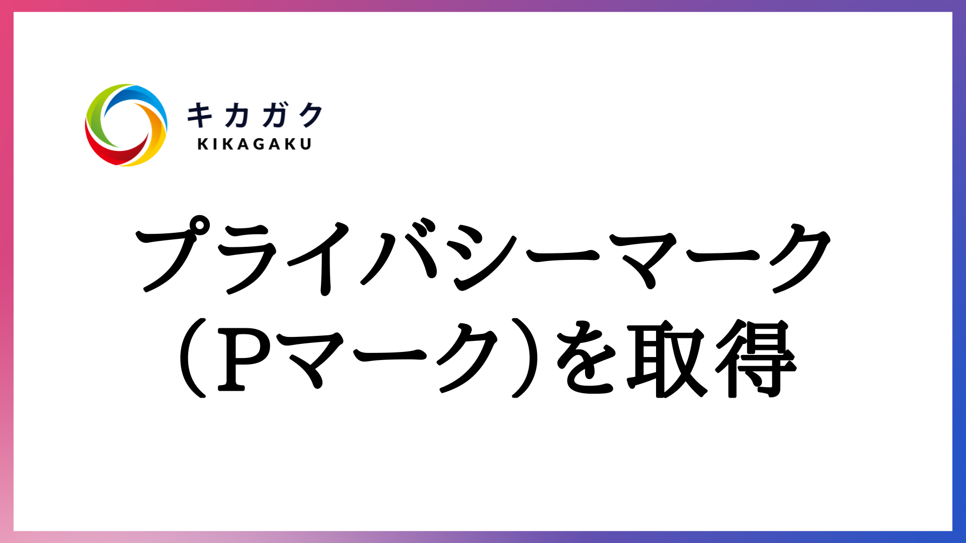 人工知能・機械学習を含めた先端技術に関する教育事業を展開する株式会社キカガク(本社:東京都渋谷区、代表取締役社長:大崎 将寛、以下キカガク)が、一般社団法人日本情報経済社会推進協会(JIPDEC)より「プライバシーマーク(Pマーク)」の認定を受けました。