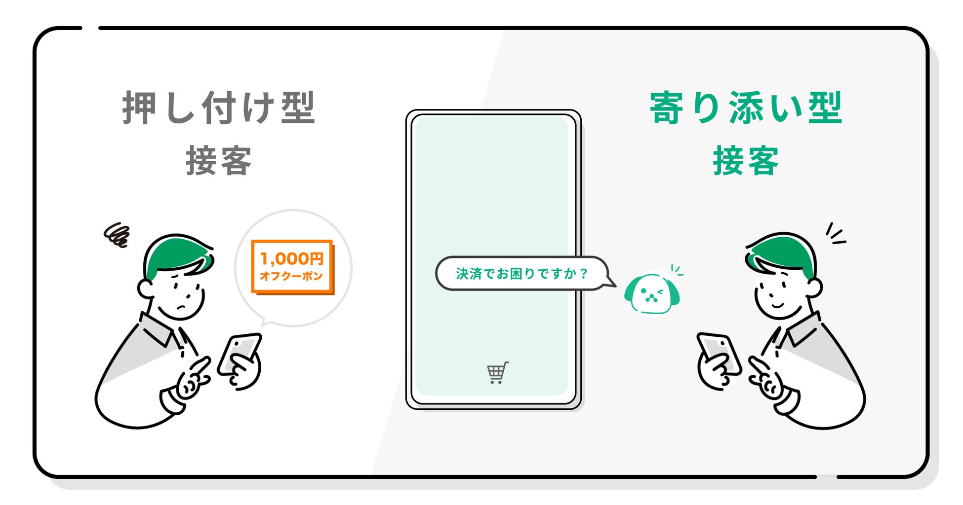 経営戦略を「新規顧客の獲得重視型」から、顧客1人当たりの収益を高める「LTV(顧客生涯価値)重視型」へとかじを切る企業も増える中で、EC上の購買体験をより良いものにするため、カラクリはEC利用時の「手続き」「決済方法」などのつまずきポイントを解消する「寄り添い型」のオンライン接客ツールを開発する運びとなりました。