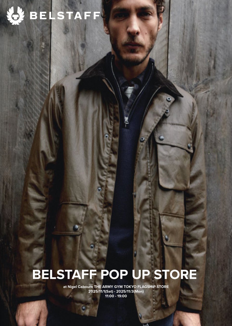 また、コラボレーションアイテム発売に合わせて、 Nigel Cabourn THE ARMY GYM TOKYO FLAGSHIP STORE (ナイジェル・ケーボン 中目黒店 )にて、 BELSTAFF POP-UP STORE を期間限定開催。