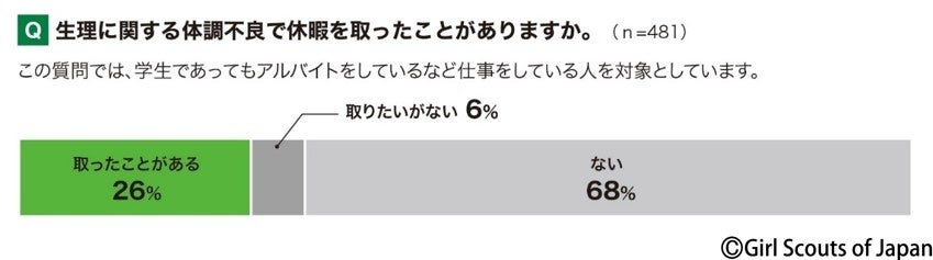生理に関する体調不良で休暇を取ったことがあると回答したのは26%