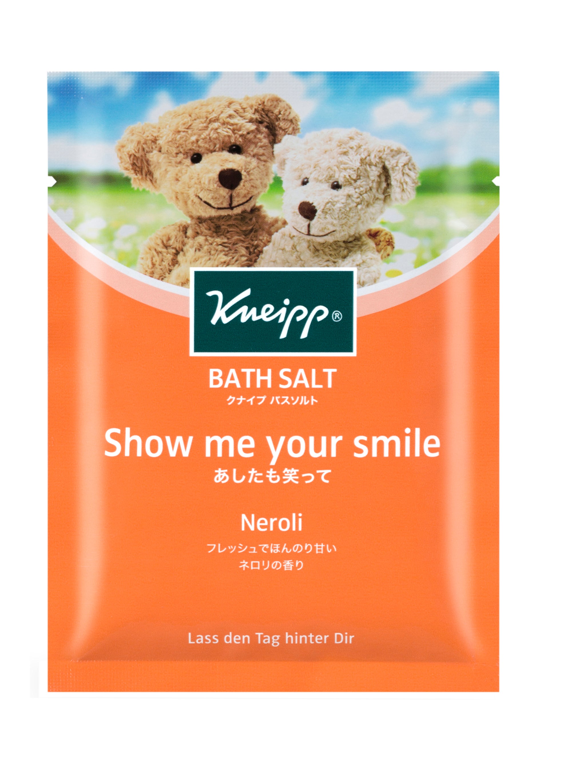 フレッシュでほんのり甘いネロリの香りと「Show me your smile あしたも笑って」のメッセージ付。