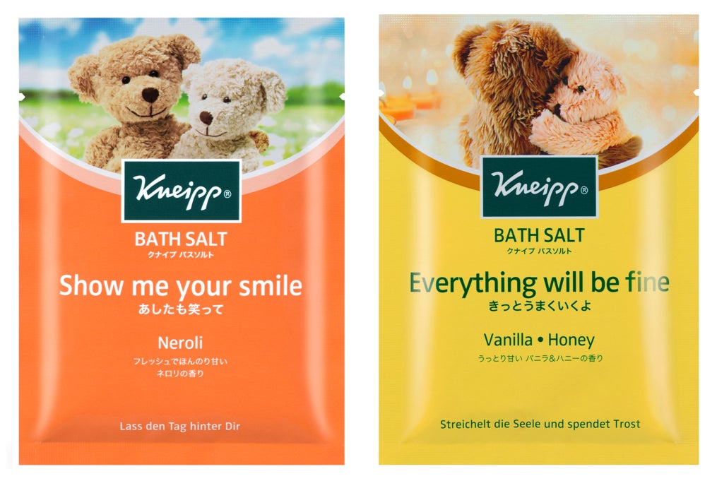 このセットには、愛らしいクマのパッケージとメッセージが人気の定番バスソルト『ネロリの香り』と『バニラ&ハニーの香り』の2種類(各50g)が入ったお得なパッケージとなっています。