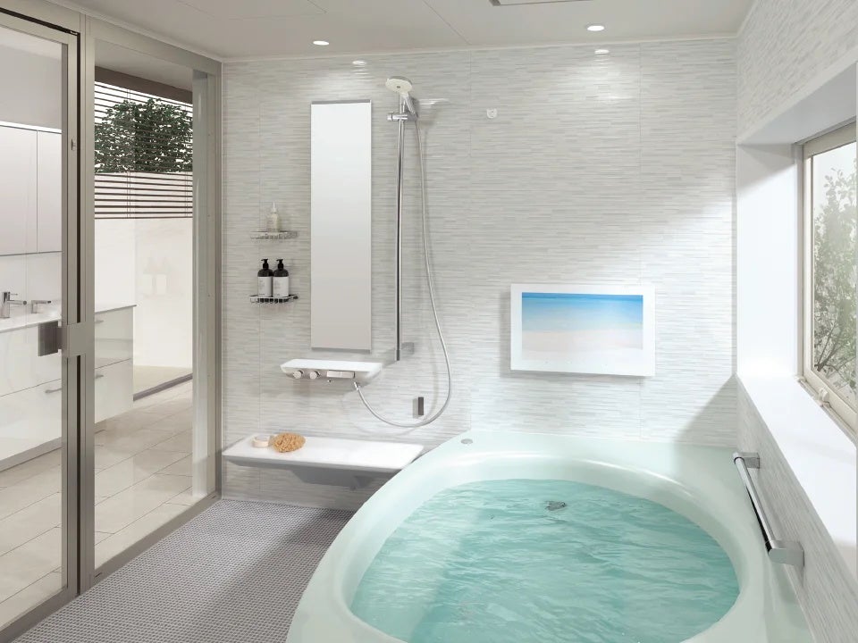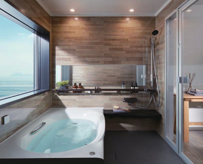 数々のデザイン賞を受賞した、ハイグレードなシステムバスです。ミストサウナや肩湯、打たせ湯など多彩な機能を搭載し、自宅でスパのようなリラクゼーションを実現。デザイン性も高く、質感のある内装素材が上質な空間を演出します。