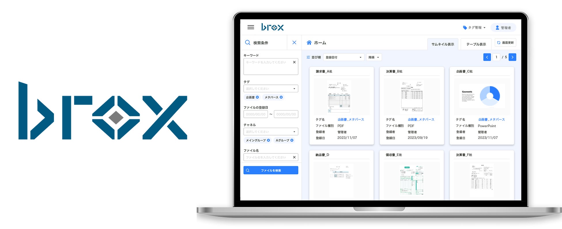 「brox」はこれまでデータ化が進まず倉庫に貯めておくだけだった紙書類の活用を実現し、業務の生産性向上に貢献いたします。