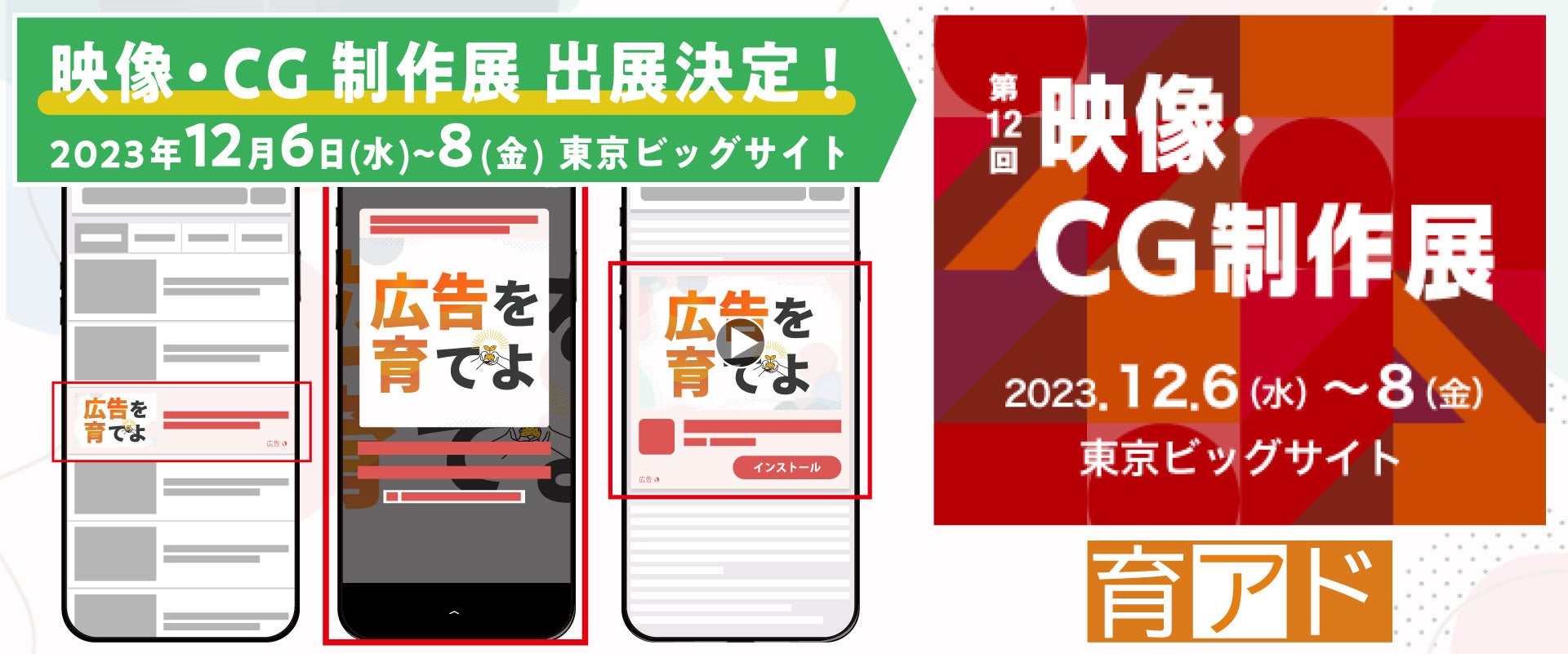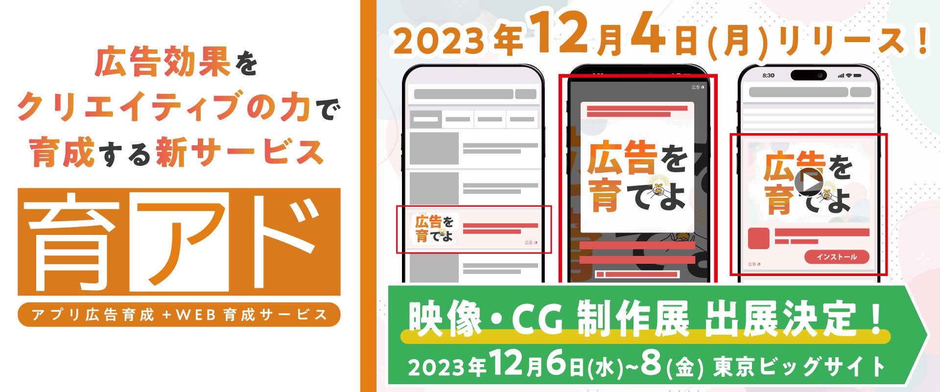 広告効果を「クリエイティブのチカラ」で育成する新サービス『育アド』が誕生!12月はプレオープン特別価格でご提供!東京ビックサイト「映像・CG制作展」に出展します!(会期:12月6日~8日)